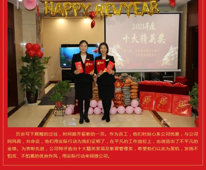 2021年終表彰暨福利發(fā)放大會 歲月不居,時(shí)節(jié)如流。70多年的光輝歷程和與春秋歲月,書寫了華夏民族的勤勞勇敢,留下了中國人的敬業(yè)拼搏。15年來秦川人秉承敬業(yè)拼搏精神,不懼風(fēng)雨,不斷突破,篳路藍(lán)縷,以啟山林,努力實(shí)現(xiàn)著秦川人的夢!過去的一年是努力拼搏的一年,也是我們值得驕傲的一年,通過全體員工的共同協(xié)作,公司的各項(xiàng)工作在逆境中依然取得了較好的成績,每一次的成績凝聚著大家共同的汗水,未來的機(jī)遇和挑戰(zhàn)需要我們繼續(xù)不懈努力去面對。 在取得成績的同時(shí),我們也要學(xué)會感恩。感恩是一種美德,是一種態(tài)度,一個(gè)懂得感恩的人,才能成就他生命的事業(yè)高度。首先,我們要感恩我們的國家,我們國家的各項(xiàng)政策使得我們國富民強(qiáng),作為企業(yè),我們要積極響應(yīng)國家各項(xiàng)政策,樹立堅(jiān)定的民族精神和信仰,用這種強(qiáng)大的精神信仰去描繪祖國未來的宏圖,將我們的一片丹心和滿腔熱血獻(xiàn)給祖國,用自己的智慧為祖國的建設(shè)奉獻(xiàn)自己的力量。其次,我們要感恩員工,一個(gè)企業(yè)的發(fā)展興衰,靠的是每一位員工高度的執(zhí)行力、忠誠度和感恩的情懷,感恩意味著和公司同舟共濟(jì)。如果企業(yè)是一條船,那我們就是一雙雙手,只有我們共同伸出雙手,讓千萬支雙手一起使勁,我們的航船才能劈波斬浪,勇往直前。 2021年我們有太多的故事和感動,2022年我們又有更多的期望和夢想。夢想的畫卷正徐徐展開,讓我們用今天的奮斗,成就明天的光榮,不忘初心再出發(fā),牢記使命勇?lián)?dāng),奮力拼搏,續(xù)寫光輝。最后祝愿我們的祖國繁榮富強(qiáng),我們的中華兒女安居樂業(yè),我們的事業(yè)蒸蒸日上,我們的公司前程似錦!