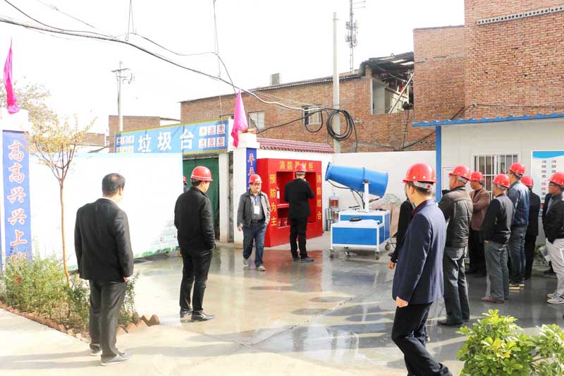 觀摩現(xiàn)場(chǎng)由秦川華府項(xiàng)目部項(xiàng)目經(jīng)理王星顯全程介紹該項(xiàng)目建設(shè)的質(zhì)量、安全、文明施工、綠色環(huán)保等方面具體的做法及所產(chǎn)生的良好成效。施工現(xiàn)場(chǎng)隨處可見(jiàn)懸掛安全、質(zhì)量、文明標(biāo)語(yǔ)及警示牌,時(shí)刻提醒作業(yè)人員謹(jǐn)記安全文明施工。辦公區(qū)域及施工現(xiàn)場(chǎng)道路全部水泥硬化并做綠化、并按照文明施工的要求配備齊全。現(xiàn)場(chǎng)設(shè)有監(jiān)控室,在生活、生產(chǎn)、作業(yè)區(qū)各個(gè)部門(mén)安裝攝像頭,實(shí)施遠(yuǎn)程監(jiān)控,使工地安全生產(chǎn)保持有序的管理狀態(tài)。設(shè)有娛樂(lè)室、休息室、茶水間等設(shè)施,最大限度地為農(nóng)民工工作和生活提供人性化服務(wù)。另外,施工現(xiàn)場(chǎng)還采取了一系列文明管理相關(guān)措施,如配備霧炮機(jī)有效地降低揚(yáng)塵污染,標(biāo)準(zhǔn)化垃圾臺(tái)有序存放垃圾并及時(shí)回收清運(yùn),雨水回收二次利用節(jié)約水資源等。施工作業(yè)區(qū)域材料堆放整齊有序,并掛設(shè)材料標(biāo)識(shí)牌,做到工完料盡場(chǎng)地清,垃圾及時(shí)回收清運(yùn),最大限度降低噪音及揚(yáng)塵污染,營(yíng)造了人、建筑產(chǎn)品與環(huán)境的和諧統(tǒng)一。該項(xiàng)目部的安全文明施工做法取得了明顯成效,不但受到了建筑主管部門(mén)和社會(huì)各界的肯定,也在渭南全城區(qū)治理?yè)P(yáng)塵各項(xiàng)檢查中,是少數(shù)幾家治理達(dá)標(biāo),施工不受影響的工地之一。