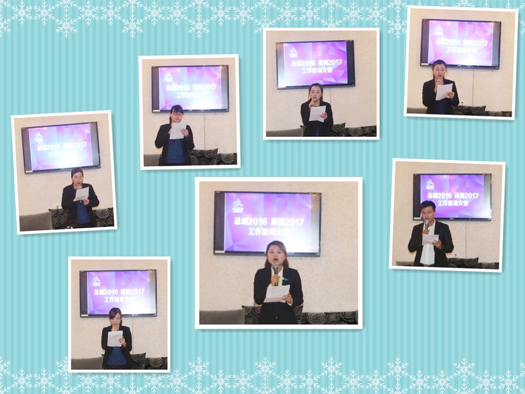 各部門高管及全體員工對2016年的工作做了深刻地總結(jié),并就個自在2016年工作中取得的成績、受到的啟發(fā),工作上的失誤總結(jié)經(jīng)驗(yàn)教訓(xùn),暢談了自己的成長目標(biāo)和人生愿景,提出了自己在2017年年度的發(fā)展目標(biāo)。