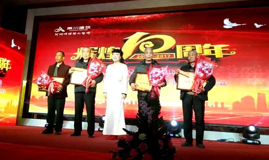 17:56慶典晚會拉開帷幕,一番精彩的燈光秀和開場舞后,全場觀眾凝神聚目觀看公司十年發(fā)展歷程記錄片,大家無不為之動容,很多員工也紛紛落下了激動的淚水。省建筑業(yè)協(xié)會徐會長、原渭南技術(shù)學院黨委書記雷書記先后發(fā)表講話,表達了對公司的祝賀及美好祝愿。田銀川董事長向支持、關(guān)心公司發(fā)展的省、市建設主管部門、協(xié)會、合作單位、員工家屬、各介朋友及員工們表示了深切的感謝,并代表秦川公司全體員工鄭重宣布:將開啟公司新的篇章,創(chuàng)造下一個更加輝煌的十年!讓員工們過上更加幸福小康的生活!晚會現(xiàn)場,劉愛云總經(jīng)理為和公司一起成長、做出貢獻的雷根緒、鈔永記、袁建忠、徐長宏四名員工頒發(fā)了榮譽證書、獎品。